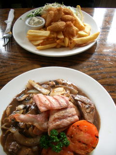 ランチに選んだのは、羊のレバーの煮込みと スキャンピ(小エビのフライ)&チップス。 レバーはこの日の人気メニューでした。